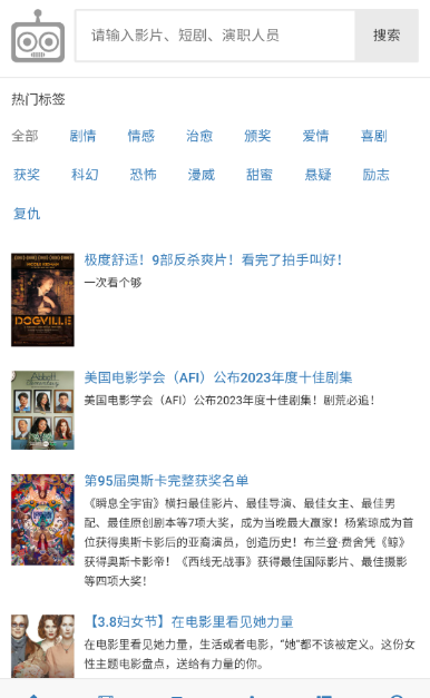 2、爱看机器人内置各类精彩电影的实时更新,可以通过电影类型和排行榜搜索,也可以在线免费观看。