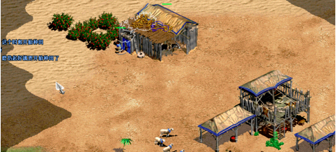 7、最后三个人会挖金子,然后砍伐树木的抽出来一个建造营房。28个农民都出来后,就可以升级到封建时代了。