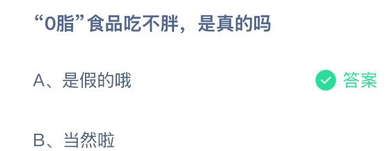 以上就是“0脂”食品吃不胖,是真的吗,支付宝蚂蚁庄园2025年10月9日答案最新,更多精彩内容,请点击关注更新!