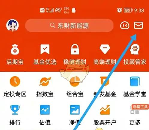 1、打开【天天基金】,点击右上角的小信封