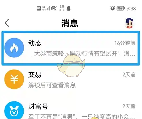 2、点击打开【动态】消息