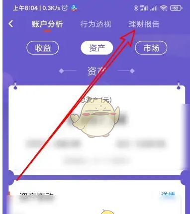 3、接下来在打开的页面,点击顶部的理财报告选项卡。