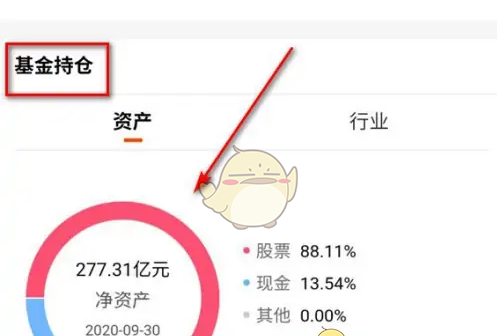 2、在详情页下拉找到“基金持仓”开始查看资产分布比例