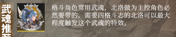 向天空进发:这是属于格斗类型的角色常用的一个武魂,一般在北洛做为主控角色的时候必然要带的就是这个武魂,搭配这个武魂之后在战斗中就需要四格斗志进行提升效果,此时的北洛可以最大程度触发这个武魂的特殊效果,带来输出上面的数值提升,一般只要是队伍当中的主要C位角色都可以搭配这个武魂。