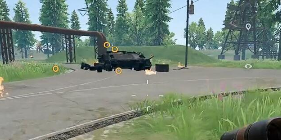 在选择好武器之后,那接下来就是关键的攻击时机还有站位,这直接关系到你能不能有机会活着拿奖励。坦克基本上都是沿着固定路线去巡逻,玩家可以躲在断墙的后面或者是集装箱的后面。等到坦克慢慢的靠近在30米以内屏幕中就可以看清楚炮管的细节,此时就可以直接探头,然后扔出火箭弹。记住每一发之间要间隔两秒,否则武器过热很有可能就会导致卡弹,那就麻烦了。万一被坦克转向锁定,也无需过于的慌乱,周围的大岩石还有废弃的车辆都是救命的掩体。