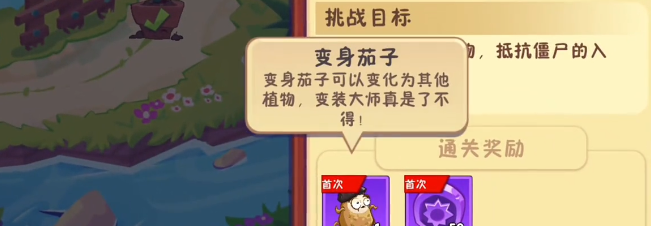 一开始以为通关已经稳了,没想到变身茄子又突然变了,又变成一个小喷菇。虽然这小喷菇也不是什么强悍的植物,是有总比没有好吧,最起码也可以抵挡一下。好在最终通关成功屏幕上弹出恭喜获得变身茄子。看到系统的这一个提示,终于松了一口气,这变身茄子虽然有一些不靠谱,但如果没有这变身茄子还真的未必能够撑到最后。这新内容玩下来里面会有一些吐槽点,但真的又让人停不下来,还是会让大家觉得很期待。