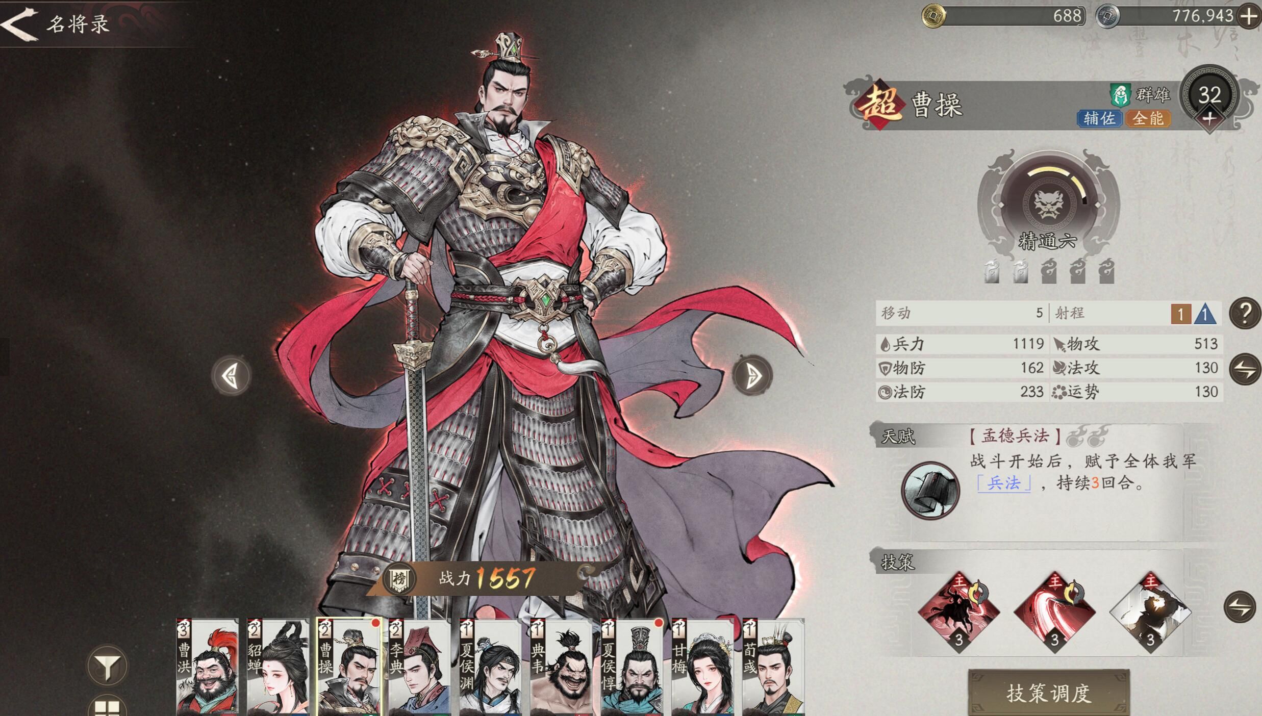 小编推荐初始阵容使用夏侯惇+夏侯渊配上李典,这样都是全系统赠送武将不用抽卡。而且曹操副将绑定活动送的卞氏,主动增益时额外提升队友8%物法攻击。夏侯惇雪恨能够带来一定的反击吸血能力,副将蔡瑁+蹋顿能显著强化能力生存,李典是奶妈,被动缩短技能冷却,第三次群体治疗量上一千曹操+双夏侯触发魏国阵营防御+15%加成,李典保障续航,个人觉得这套组合开荒特别稳。