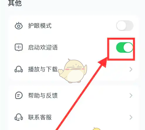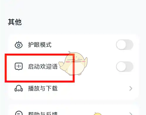 2、进入选择界面,点击‘启动欢迎语’可关闭。
