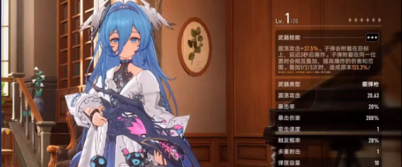接着也可以看一下具体的属性,按照基础的状态举例说明震荡攻击20.63,攻击率为20%,暴击伤害是200%。有20%的触发几率,最大的弹药是90发,武器技能也是比较有特色的。震荡攻击伤害就可以增加37.5%,子弹打在目标的身上就会直接粘住,三秒之后就会直接爆炸。要是好几颗子弹全部黏附在同一个位置,那就会叠加伤害,并且还会有爆炸性的范围。越多则意味着所造成的恐怖伤害就更厉害,二次爆发才是真正的威力。