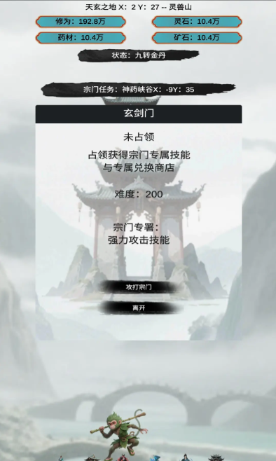每个宗门都有自己的技能,获得其他宗门技能,可以攻打宗门,成功以后。