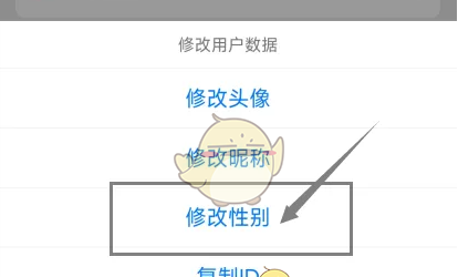 3、打开修改用户数据窗口,点击【修改性别】。