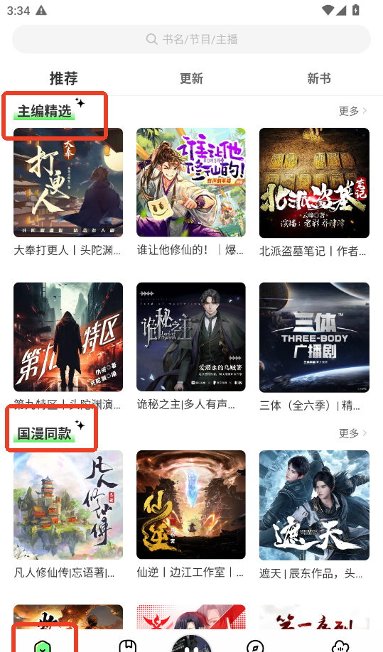1、进入首页后,您可以通过推荐书单、分类(精选、国漫等)浏览感兴趣的书籍。