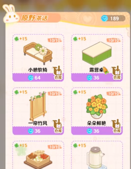 在游戏中都是由尾尾木制作而成,因此如果想轻松拥有的话,那么就需要收集大量的材料了。游戏会定期推送出各种小活动,比如有冲榜之星或者是各种小游戏等等。那么积极加入了这些游戏之后即可收集大量的材料,比如头巾或者灶台,这些材料对接下来的家具打造是有很大的帮助也是必不可少的,因此多参与各种活动之后就会让自己手中的材料越来越多。