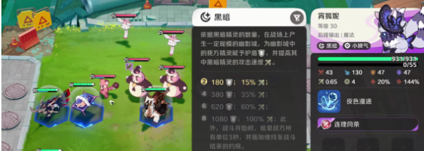 黑暗元理属于游戏中独特的属性类型,主要由能够克制光属性的精灵持有。其核心机制围绕“幽影域”展开:随着场上黑暗系精灵数量增加,将生成一个蓝紫色的六边形领域。该领域会随精灵数量增加而扩展,为范围内的所有黑暗系单位提供护盾加成并提升基础攻击倍率。