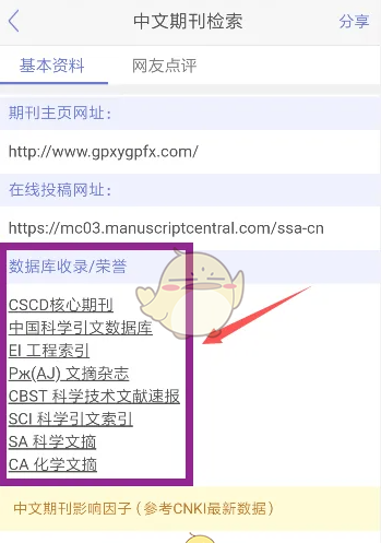 3、打开自己查询的期刊,在里面能够看见期刊的收录情况(即就代表了你查询期刊的级别)。