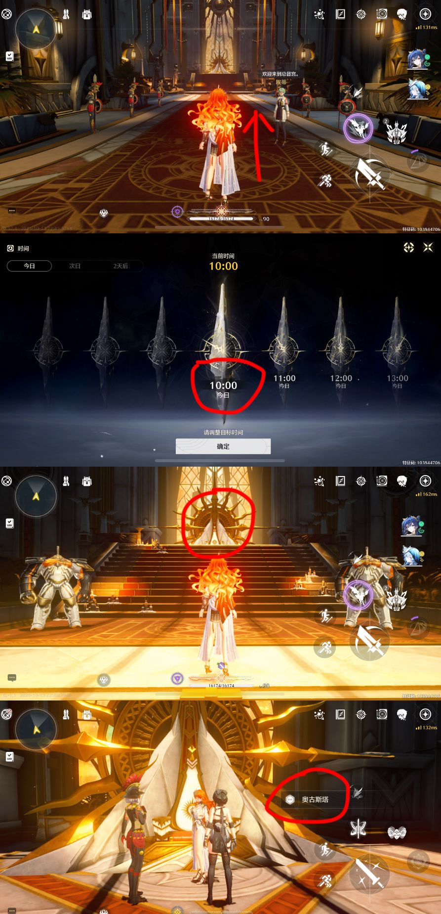 进入宫殿后,走至楼梯前,调整时间至:次日早上10:00,到楼梯尽头太阳标志处,与奥古斯塔对话