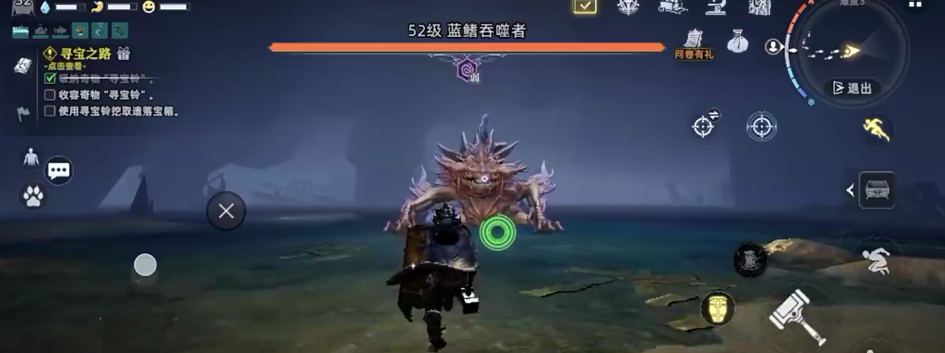在几次攻击不中以后,蓝鳍吞噬者会直接从角色身体的上面游到远处躲避攻击,这时的boss会进入到一个虚弱的状态,玩家可以趁着boss的虚弱加紧自身的攻击。