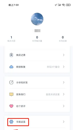 1、打开柠檬喝水app后,进入我的,点击(常规设置)按钮。