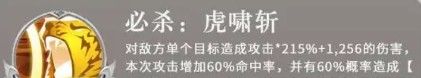 对敌方单个目标造成攻击*215%+1,256的伤害,本次攻击增加60%命中率,并有60%概率造成【中毒】状态,对攻击力低于自身的目标概率提高40%,持续3回合。