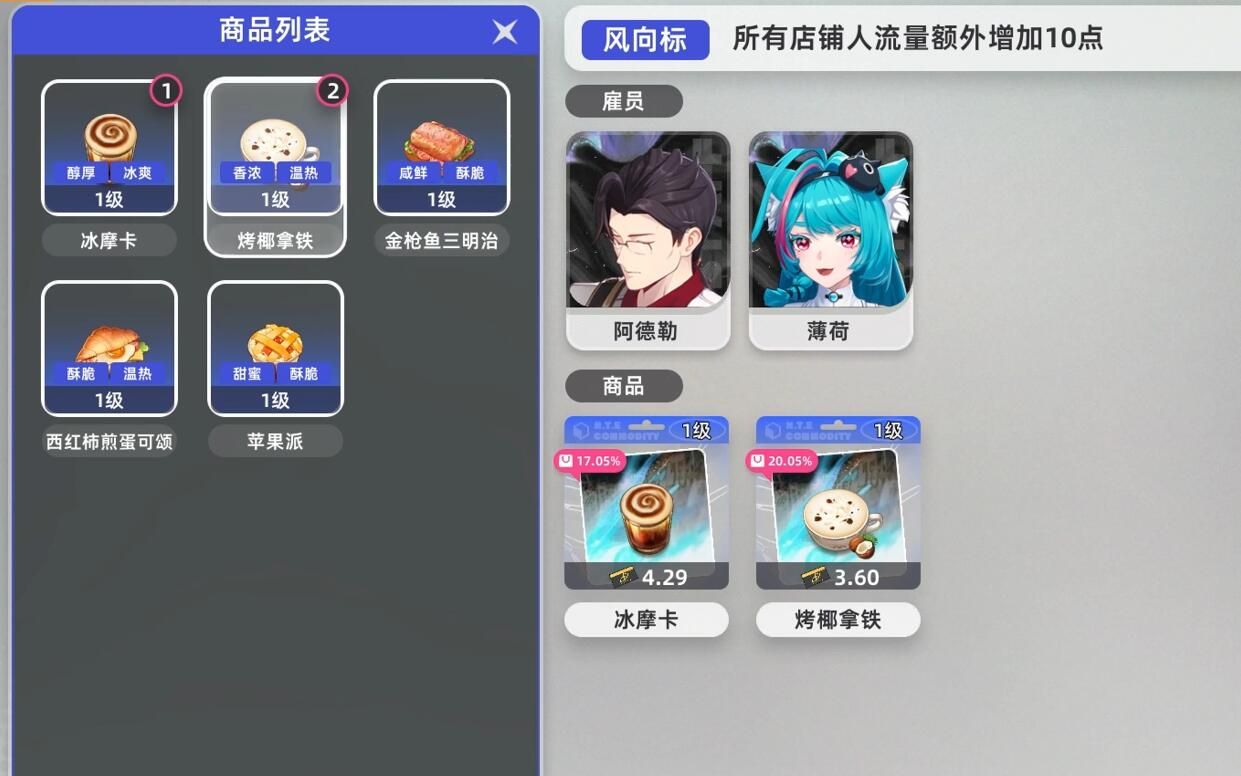 大家想要再提高收益,需要提升一下员工的技能和商品的搭配,因为店铺2级后,苹果派和咖啡捆绑销售,拖到收银台组合货架,能提升连带购买率。哈索尔3级后能点出咖啡大师分支,优先点满金杯萃取,能让精品咖啡售价提高0.45元,前期投入的点数比较大,但是收益很可以,每天结束前检查顾客反馈,连续两次材料不足就要补货,否则影响次日评分。后面