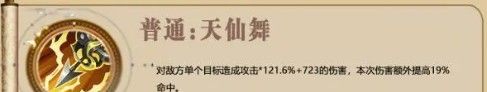 对敌方单个目标造成攻击*121.6%+723的伤害,本次伤害额外提高19%命中。
