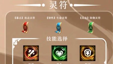 由于张飞在团队中的作用,主要是持续输出,净化回血减伤等辅助,所以在灵符的选择上,优先选择【攻击灵符】、【防御灵符】、【生命灵符】。