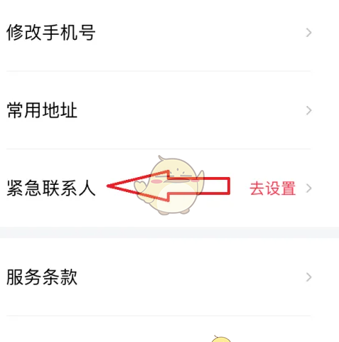 3、在享道出行设置中,找到并点击【紧急联系人】