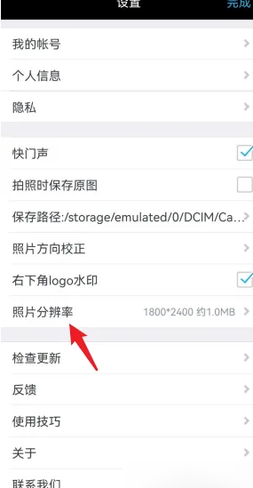 3、进入设置里面,点击设置照片分辨率就行了,如下图。