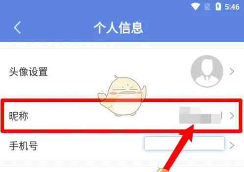 2、进入页面点击‘昵称’