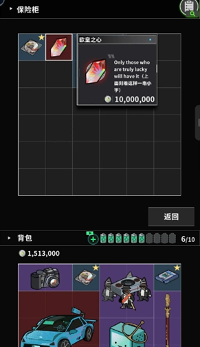 5、高质量的地点,普通资源,高级资源,保险柜子会随机刷新,大和小,还有一个是运营商的⭐型保险柜最少出一个红色的物品,但是要看一个广告,如果有运营商的⭐型标志,你可以选择租赁八个格子可以多放一些高质量的物品以便更快晋升青龙。