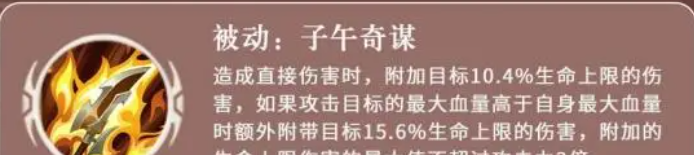 他的最后一个被动叫做子午奇谋,这个子午奇谋是在他造成直接伤害之后,有机会可以触发的,触发了这个子午奇魔之后,他可以附加目标的10%生命上限伤害,那么此时如果攻击敌人身上的血量高于魏延身上的血量,还会额外附带15%的生命上限伤害,附加的这里生命上限的伤害数值当然最大是不超过攻击力两倍的,但是这个被动带来的整体输出提升就是非常强的,这里给他搭配灵符的话,大家要考虑到魏延在团队当中的作用,一般来说他主要负责的是暴力普攻以及群攻上面有优势,所以灵符大家可以选择一些攻击类型的灵符。