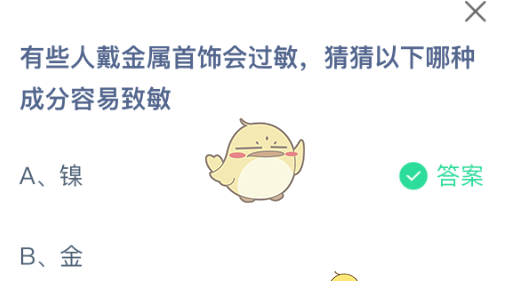 以上就是有些人戴金属首饰会过敏,猜猜以下哪种成分容易致敏,支付宝蚂蚁庄园2025年10月21答案最新,更多精彩内容,请点击关注更新!