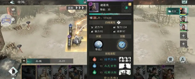 比如说开荒的时候一定是要有奶妈的,没有奶妈前期大家打武将的话,其实在整体难度上面会有提升不少,因为前期大家的粮草是非常少的,所以使用起来一定要珍惜一些,这里大家可以用到的国家队在抽卡没有那么多的情况下,可以考虑到的是一个蔡文姬加荀彧加张辽的搭配,这样的一个国家队主要就是用来秒后排的,所以是可以针对敌方的核心输出角色来进行攻击,当然如果抽不到以上的这三个角色,大家还可以考虑的就是黄月英加诸葛亮加赵云这个搭配。