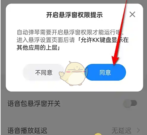 进入kk键盘“我的”页面,点击右上角小齿轮图标进入设置,找到并点击“自动弹琴”,点击“同意”后,再点击“KK键盘”,最后将“授予悬浮窗权限”旁的按钮开启,即可启用自动弹琴功能,还可根据喜好挑选音乐节奏模板、调整音符播放速度和持续时间等。