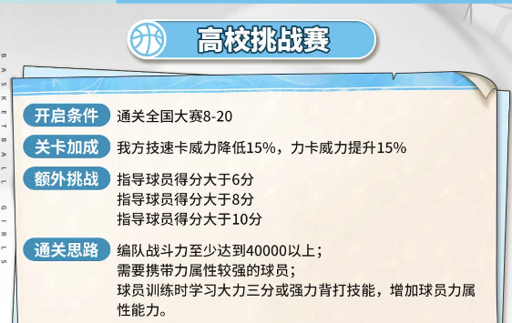 《代号篮球少女》高校挑战赛通关攻略