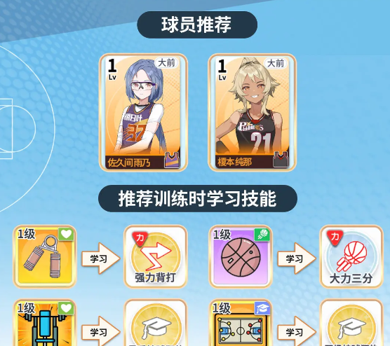 球员训练时学习大力三分或强力背打技能,增加球员力属性能力。