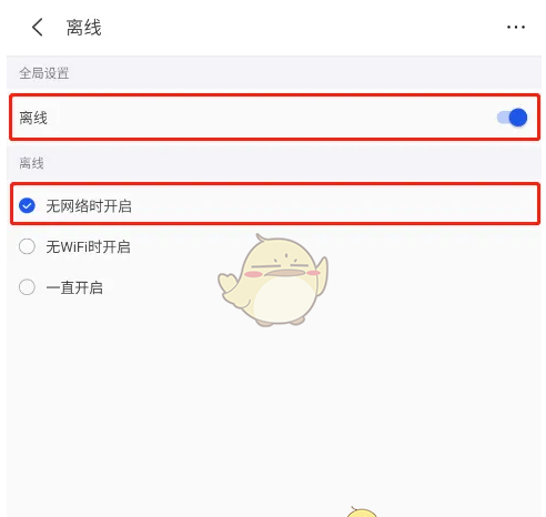 5、打开如下图界面,选择离线选项,点击开启后面的开关,然后点击勾选无网络时开启选项,这样就开启KK键盘的离线语音了。