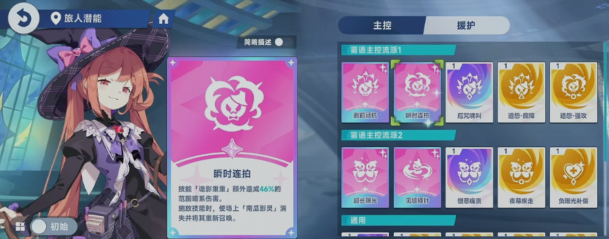 这里删前顽抗潜能可以让雾语在技能召唤使用的情况中国得到足够多的使用频次,因为她的冷却时间会因为这个潜能得到缩短,而在南瓜影灵产生自爆的时候产生的伤害还可以根据瞬时连拍带来的增益效果,再一次造成额外的伤害,使用技能的时候,还可以让南瓜影灵重新被召唤出来,这里重新召唤出来的时间也是跟正经的技能召唤时间是一样的,后期如果想要为雾语搭配合理阵容的话,给他的定位上面就担任主控,然后其他的掩护角色可以选择科洛尼斯、珂赛组成。