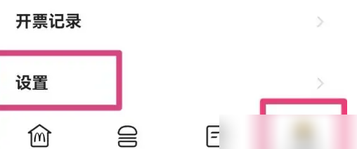打开手机麦当劳app,点击右下角“我的”,进入新页面,点击页面下方的“设置”。