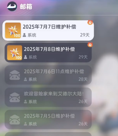最后就是要参与游戏的开服活动,因为开服活动里面也会给到大家一些补偿以及福利,这里的话通过邮箱就可以看到目前的一些通知,因为辉石作为目前游戏当中比较用处比较多的货币,必然会出现在开发活动的补偿里面,这里给到补偿一般是在系统进行维护的时候就会给到的,而且一次性也会给很多,数量达到100~200个左右,参与此类维护的话,基本是不用大家怎么去花时间的,只要进行点击就可以拿到了。