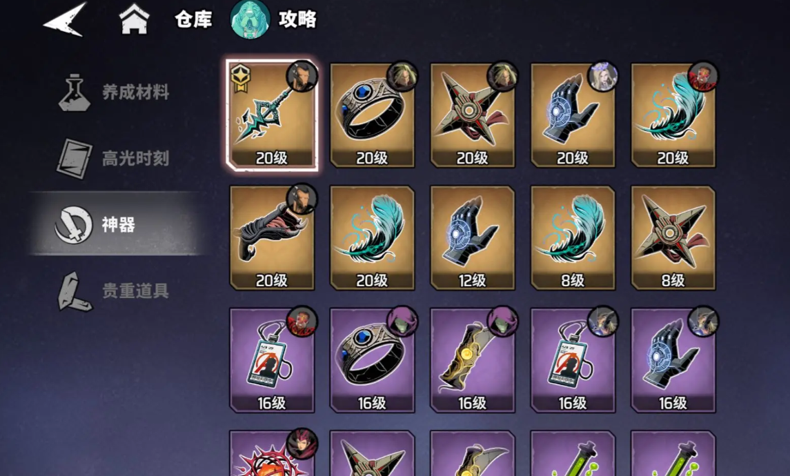 神器目前大家想要使用的话,至少要等到自己的等级突破了25级之后才可以解锁,而且给英雄搭配好足够的神器的话,他们在战力提升上面会有大幅度的提升效果,对于一些战技效果比较直接的角色来说,输出类型的有钢铁人,靶眼女士以及灵蝶之类的角色,这类角色其实在选择神器上面可以选择永恒标枪这个神器,因为它可以带来足够的战技伤害效果,一般在30%的战技提升之后,他们的主要输出手段都会变得更强势一些,而且在伤害上面都能打出大量的实体伤害,如果没有永恒标枪的话,大家也可以考虑搭配不稳定分子这个神器,它虽然带来的只有10%的攻击力,但是是作用在普攻以及战技效果上面的,所以不管是使用哪一个技能,效果上面其实稳定提升都是比较适合前期使用的。