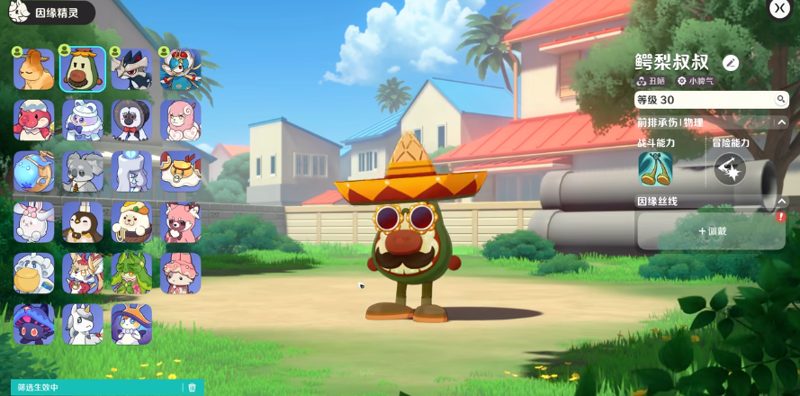 而鳄梨叔叔的特性是小脾气,根据这个特性,其实大家可以选择精灵就有很多,目前在特性里面,小脾气类型当中的一共有8个宠物可以进行选择,所以大家可以根据这些特性上场达到的羁绊触发一个比较好的效果,这里小脾气精灵在上阵之后,他们得到的基本效果就是全能吸血的效果,在吸血的状态达成之后,还有一定的暴击力提升概率,如果在战斗里面,大家触发了这个小脾气的羁绊,那么此次如果击败敌人,并且是第一个击败敌人,还有额外的战果加成,也就是说首次击败敌人的时候,他得到的价值是最高的,当然也因为这样独特的原理,他的输出在进行搭配的时候,其实阵容上也是比较自由的,大家要考虑的就是他的小脾气特性,因为这是比较简单的触发条件,他的这个羁绊能够触发的话,达到的这种效果是比较明显的。