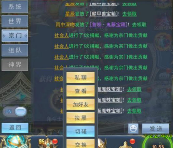 其实除了这种特别简单而且核心的添加方式以外,还有另外几种不同的添加方式,其中也提供了不同的频道,比如有世界或者是宗门等等,此时也是进入到了聊天的界面中,直接将玩家的名字输入进去,就可选择添加好友,这种方式虽然特别方便,但是却有一定的局限性,只能和在聊天界面中的好友添加。其次还有就是可在附近寻找更多志同道合的玩家,比如在附近区域中直接点击f键就可打开相应的列表,看到自己喜欢的好友之后,右键就可选择添加。