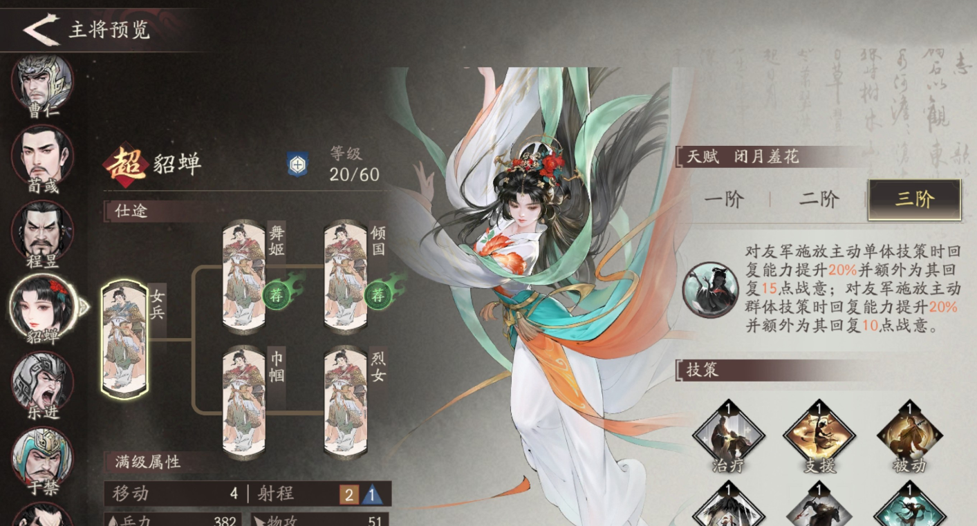 三国望神州貂蝉强度怎么样?作为玩家完成再来战任务后可免费获得的辅助类武将,貂蝉凭借其治疗能力与怒气回复机制,在升至三阶并激活怒气转移特性后,能显著提升队伍整体作战效率。为了帮助大家更好地理解这一角色的定位与使用方式,本文将详细介绍她的技能机制,并提供合理的阵容搭配建议,助力玩家高效培养该角色。