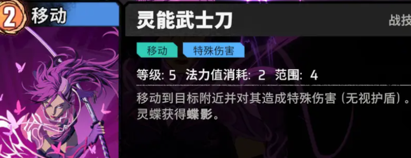 大家只能够接近敌人来造成特殊的伤害,无视对方护盾的效果,接着就是战斗技能意识化蝶,这个技能也是可以移动到目标敌人的位置,来对左右双方敌人造成特殊的伤害,还可以获得谍影,提高整体的伤害,这个技能会持续十秒钟的时间,大家可以来选择落点的位置,增加范围性的伤害,玩家们在使用的过程中,可以搭配高光时刻和神器来进行使用,还有一个专属卡也可以来获得增益的效果,选择神器的过程中,可以选择一个增加攻击,一个增加暴击的神器。