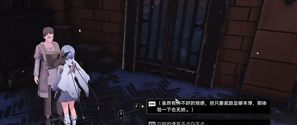 接着,我们根据任务提示去做,应该会遇到一些挑战或者需要探索的地方。完成这些任务后,再次回到入口处,和NPC对话。这里又有一个选项,选择第一个:“你没事吧?”这个选项会让你获得道德属性的提升。