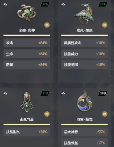 剩下的位置可以选择全带羽翼永恒,如果选择这一个,那就可以增加24%的最大神智以及18%的技能耐久,可以进一步的堆高神智,让技能的循环更加的顺畅,而且还可以叠技能耐久。保证技能是不会断档的,这就是一个百搭的选择,主要的优势就是稳扎稳打。根据这一些方向去挑选,那自然就会拥有更好的优势,因此大家就可以关注一下。