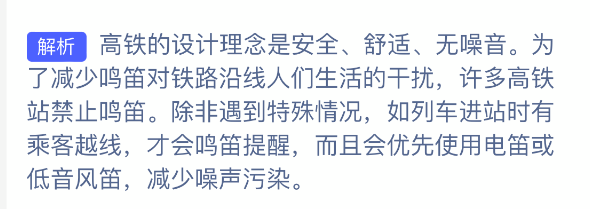 1、题目:为什么很少听到高铁列车的鸣笛声