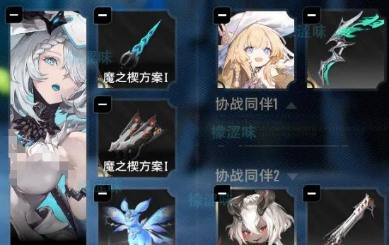 武器和魔之楔这方面的选择其实也是比较重要的,也有一些讲究。丽蓓卡可以直接选择枯朽,赘生,这把武器所增加的技能威力是比较出色的,可以大范围的提升范围性的输出。松露和塔比瑟主要是选择弧光百劫,这把武器就可以给队友增加攻击力,还有防御数值以及技能耐久数值等等。相当于给整个队伍都能带来一层增益效果,在挂机时收益还可以直接翻倍。魔之楔这方面三个角色都可以选择魔之楔方案I,不需要花太多的时间去刷特殊的方案,性价比这方面来看还是比较出色的,值得选择。
