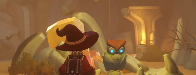 接着,你可以去紫色锅的右边,那儿同样有两面石墙。先打破第一面墙,进入后会看到一只猫头鹰。这个时候,切换到星光魔法攻击它,它会转身,然后你会看到第二只猫头鹰,继续用星光魔法攻击它。等你打完第二只猫头鹰,再转身就会看到第三只猫头鹰,把它也给打倒。这时候,你就能到达最后的位置,找到一个华丽的宝箱,打开宝箱就能拿到第一块矿石晶块。
